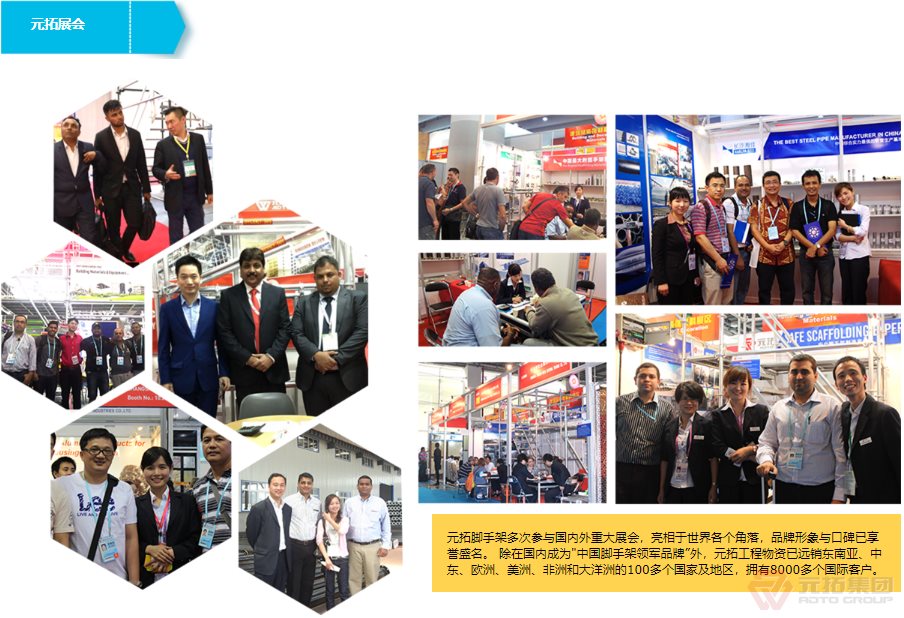 湖南元拓建材集團(tuán)股份有限公司(簡(jiǎn)稱:元拓建材集團(tuán))始創(chuàng)于1998年,以工程最前端的腳手架、鋁合金模板等產(chǎn)品為基礎(chǔ),現(xiàn)已發(fā)展成為集房產(chǎn)、工程、材料全產(chǎn)業(yè)鏈服務(wù)及多元化發(fā)展的大型實(shí)業(yè)集團(tuán)。元拓模架產(chǎn)業(yè)鏈板塊(簡(jiǎn)稱元拓模架)隸屬于湖南元拓建材集團(tuán),提供模架產(chǎn)業(yè)鏈解決方案––全系模架產(chǎn)品(含國(guó)際)、模架租賃及托管、勞務(wù)施工、數(shù)字模架、營(yíng)銷訂單解決方案、應(yīng)收解決方案。 元拓模架深耕全球市場(chǎng)24年,目前擁有天津和順昌、湖北元拓鋁模兩大模架生產(chǎn)基地,長(zhǎng)沙、青島、廣州三大子公司,埃及、印尼、迪拜、菲律賓等10多家海外子公司/辦事處。是中國(guó)石油、中國(guó)石化等世界知名石化施工企業(yè)指定供應(yīng)商和世界各國(guó)優(yōu)秀工程施工企業(yè)長(zhǎng)期戰(zhàn)略合作伙伴,銷售網(wǎng)絡(luò)遍布多個(gè)國(guó)家和地區(qū)。