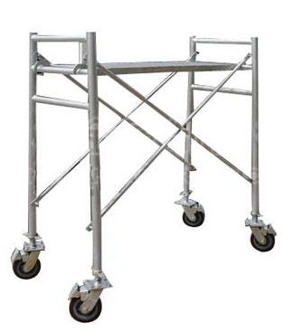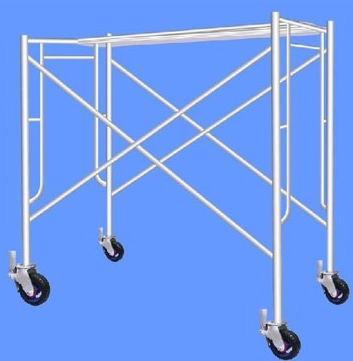 移動(dòng)腳手架主要有主框,橫框,交叉斜撐,腳手板,可調(diào)底座等組成。交叉拉桿又稱斜拉桿、移動(dòng)腳手架是縱向連接兩副門架的交叉型拉桿。桿件兩端壓扁部分沖有銷孔,組裝時(shí)與門架立桿上的鎖銷鎖牢。
