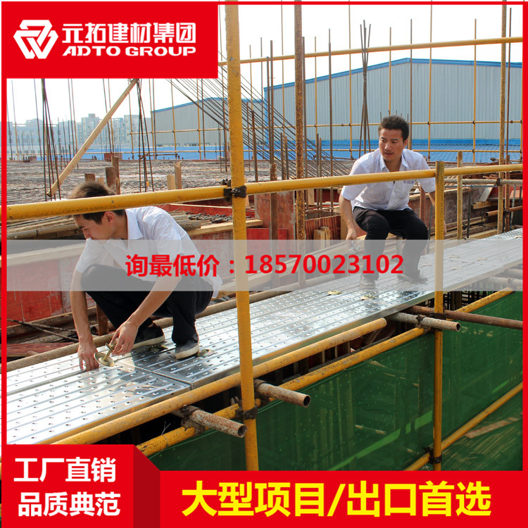 近幾年,鋼踏板市場(chǎng)非常好,很多的工程項(xiàng)目都換掉了以前的竹木跳板,鋼網(wǎng)跳板也不再受歡迎。市場(chǎng)需求導(dǎo)致國(guó)內(nèi)廠家遍地開(kāi)花,小作坊居多,質(zhì)量不可靠。這里主要介紹一個(gè)腳手架鋼踏板第一制造商——元拓集團(tuán)! 元拓鋼踏板產(chǎn)品詳細(xì)描述: 1.有沖孔的鋼跳板耐用,減重…