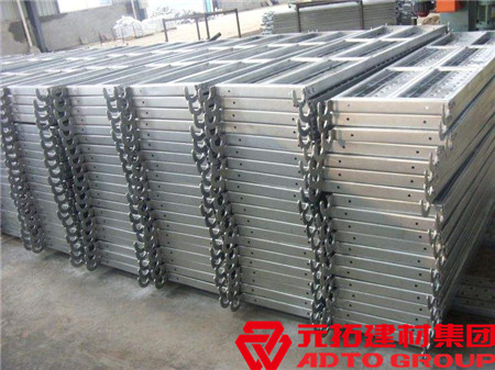 鋼跳板是市場上主要的腳手架配件,作為高處施工平臺使用。施工人員在上面行走,以及搬運(yùn)材料用的器材。